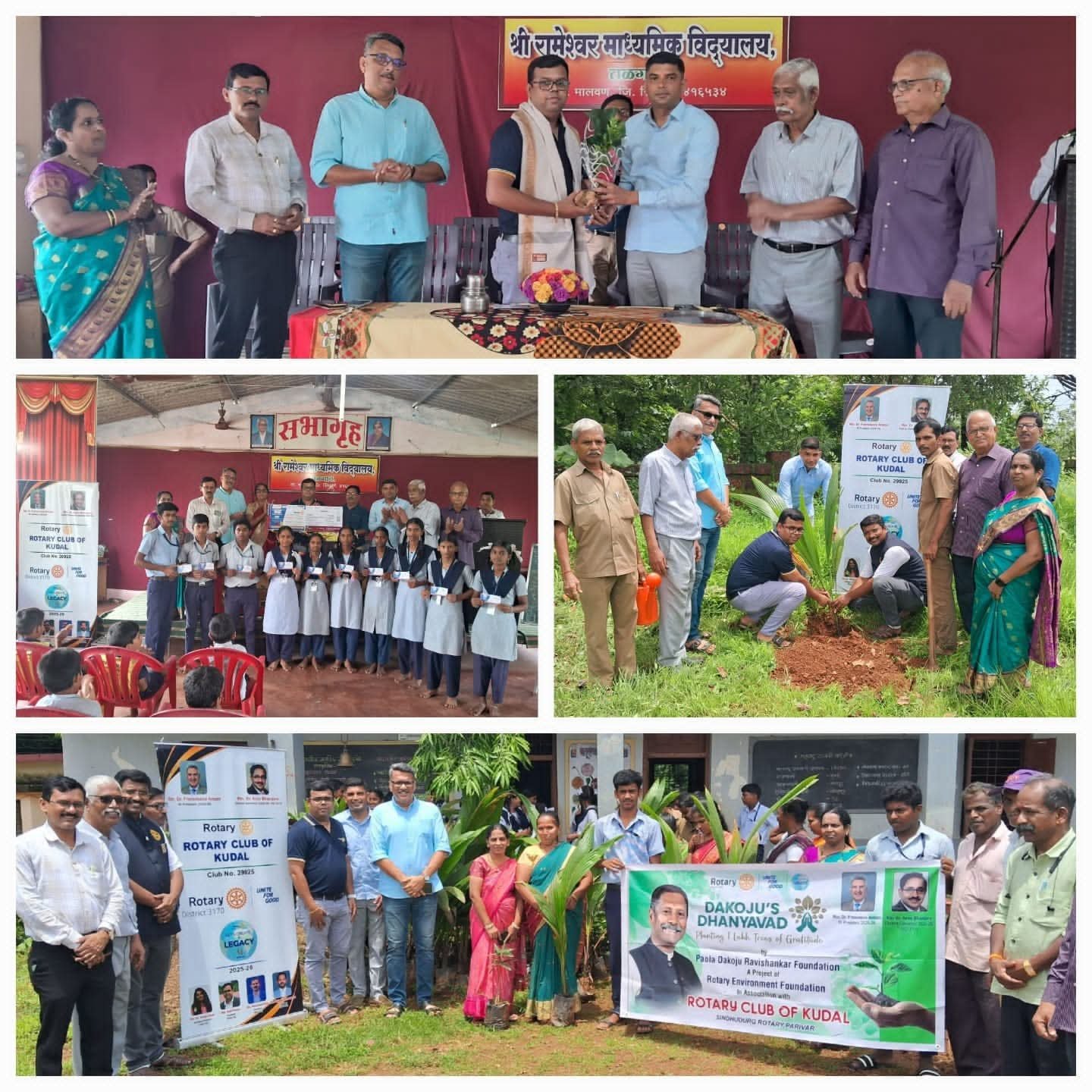 рддрд│рдЧрд╛рд╡ рд╣рд┐рддрд╡рд░реНрдзрдХ рд╕рдВрдШ рдореБрдВрдмрдИ рд╕рдВрдЪрд╛рд▓рд┐рдд рд╢реНрд░реА рд░рд╛рдореЗрд╢реНрд╡рд░ рдорд╛рдзреНрдпрдорд┐рдХ рд╡рд┐рджреНрдпрд╛рд▓рдп рддрд│рдЧрд╛рд╡ рдпреЗрдереЗ рд╢рдирд┐рд╡рд╛рд░ рджрд┐рдирд╛рдВрдХ реи рдСрдЧрд╕реНрдЯ реирежреирел рд░реЛрдЬреА рд╕рдХрд╛рд│реА рд░реЛрдЯрд░реА рдХреНрд▓рдм рдСрдл рдХреБрдбрд╛рд│ рддрд░реНрдлреЗ рдЗрдпрддреНрддрд╛ рджрд╣рд╛рд╡реАрдЪреНрдпрд╛ рд╡рд┐рджреНрдпрд╛рд░реНрдереНрдпрд╛рдВрдирд╛ рд╢реИрдХреНрд╖рдгрд┐рдХ рдЕрдБрдк рдЪреЗ рд╡рд┐рддрд░рдг рд╡ рдорд╛рд╣рд┐рддреА рддрд░ рд╡рд┐рджреНрдпрд╛рд░реНрдереА,рдкрд╛рд▓рдХ рд╡ рдЧреНрд░рд╛рдорд╕реНрдерд╛рдВрдирд╛ реирежреж рдЭрд╛рдбрд╛рдВрдЪреА рд░реЛрдкреЗ рд╡рд╛рдЯрдк рдХрд░рдгреНрдпрд╛рдд рдЖрд▓реА. рдпрд╛ рдХрд╛рд░реНрдпрдХреНрд░рдорд╛рд╕рд╛рдареА рд░реЛрдЯрд░реА рдХреНрд▓рдм рдХреБрдбрд╛рд│ рдЪреЗ рдкреНрд░реЗрд╕рд┐рдбреЗрдВрдЯ