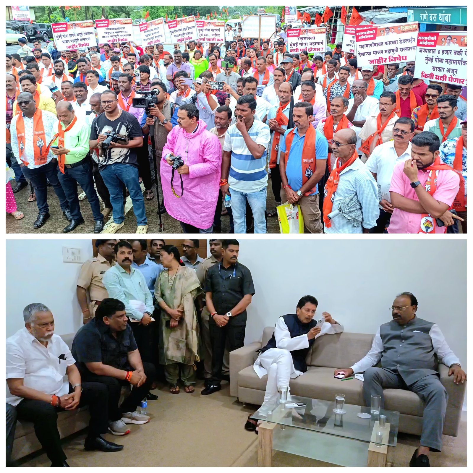 рдЧреЗрд▓реА рдЕрдХрд░рд╛ рд╡рд░реНрд╖реЗ рд░рдЦрдбрд▓реЗрд▓рд╛ рдореБрдВрдмрдИ рдЧреЛрд╡рд╛ рдорд╣рд╛рдорд╛рд░реНрдЧ рдЖрдгрд┐ рдорд╣рд╛рдорд╛рд░реНрдЧрд╛рд╡рд░ рдкрдбрд▓реЗрд▓реНрдпрд╛ рдЦрдбреНрдбрдпрд╛рдВрдмрд╛рдмрдд рд╕рд┐рдВрдзреБрджреБрд░реНрдЧ рдЬрд┐рд▓реНрд╣рд╛ рд╢рд┐рд╡рд╕реЗрдирд╛ рдЙрджреНрдзрд╡ рдмрд╛рд│рд╛рд╕рд╛рд╣реЗрдм рдард╛рдХрд░реЗ рдкрдХреНрд╖рд╛рдиреЗ рдЖрдХреНрд░рдордХ рдкрд╡рд┐рддреНрд░рд╛ рдШреЗрдд рдорд╛рдЬреА рдЖрдорджрд╛рд░ рд╡реИрднрд╡ рдирд╛рдИрдХ рдпрд╛рдВрдЪреНрдпрд╛ рдиреЗрддреГрддреНрд╡рд╛рдЦрд╛рд▓реА рдЖрдЬ рд╕рдХрд╛рд│реА рдХреБрдбрд╛рд│ рддрд╛рд▓реБрдХреНрдпрд╛рддреАрд▓ рд╣реБрдорд░рдорд│рд╛ рдпреЗрдереЗ рдореБрдВрдмрдИ рдЧреЛрд╡рд╛ рдорд╣рд╛рдорд╛рд░реНрдЧрд╛рд╡рд░ рд░рд╛рд╕реНрддрд╛рд░реЛрдХреЛ рдЖрдВрджреЛрд▓рди рдХреЗрд▓реЗ. рдпрд╛ рдЖрдВрджреЛрд▓рдирд╛рд▓рд╛ рд╢рд┐рд╡рд╕реЗрдирд╛ рдкрджрд╛рдзрд┐рдХрд╛рд░реА, рд╢рд┐рд╡рд╕реИрдирд┐рдХ рд╡ рдЬрд┐рд▓реНрд╣рд╛рд╡рд╛рд╕рд┐рдпрд╛рдВрдЪрд╛ рдЙрддреНрд╕реНреЮреБрд░реНрдд рдкреНрд░рддрд┐рд╕рд╛рдж рд▓рд╛рднрд▓рд╛ рд╣реЛрддрд╛ рдЖрджреЛрд▓рдХрд╛рдВрдиреА рд░рд╕реНрддреНрдпрд╛рд╡рд░ рдмрд╕реВрди рд╕реБрдорд╛рд░реЗ рдЕрд░реНрдзрд╛ рддрд╛рд╕ рдорд╣рд╛рдорд╛рд░реНрдЧ рд░реЛрдЦреВрди рдзрд░рд▓рд╛. рдпрд╛рд╡реЗрд│реА рдорд╛рдЬреА рдЖрдорджрд╛рд░ рдкрд░рд╢реБрд░рд╛рдо рдЙрдкрд░рдХрд░, рдХрдгрдХрд╡рд▓реА рд╡рд┐рдзрд╛рдирд╕рднрд╛ рдкреНрд░рдореБрдЦ рд╕рддреАрд╢ рд╕рд╛рд╡рдВрдд, рдЬрд┐рд▓реНрд╣рд╛рдкреНрд░рдореБрдЦ рд╕рдВрджреЗрд╢ рдкрд╛рд░рдХрд░, рдЬрд┐рд▓реНрд╣рд╛рдкреНрд░рдореБрдЦ рдмрд╛рдмреБрд░рд╛рд╡ рдзреБрд░реА,рдпреБрд╡рд╛рд╕реЗрдирд╛ рдЬрд┐рд▓реНрд╣рд╛рдкреНрд░рдореБрдЦ рдордВрджрд╛рд░ рд╢рд┐рд░рд╕рд╛рдЯ, рдпреБрд╡рд╛рд╕реЗрдирд╛ рдЬрд┐рд▓реНрд╣рд╛рдкреНрд░рдореБрдЦ рд╕реБрд╢рд╛рдВрдд рдирд╛рдИрдХ, рдорд╣рд┐рд▓рд╛ рдЬрд┐рд▓реНрд╣рд╛рдкреНрд░рдореБрдЦ рд╢реНрд░реЗрдпрд╛ рдкрд░рдм рдпрд╛рдВрдЪреА рдкреНрд░рдореБрдЦ рдЙрдкрд╕реНрдерд┐рддреА рд╣реЛрддреА. рдпрд╛рд╡реЗрд│реА рдкреЛрд▓рд┐рд╕рд╛рдВрдиреА рд╣рд╕реНрддрдХреНрд╖реЗрдк рдХрд░рдд рдорд╛. рдЖ. рд╡реИрднрд╡ рдирд╛рдИрдХ рдпрд╛рдВрдЪреНрдпрд╛рд╕рд╣ рдЗрддрд░ рдиреЗрддреЗ рд╡ рдХрд╛рд░реНрдпрдХрд░реНрддреНрдпрд╛рдВрдирд╛ рдЕрдЯрдХ рдХреЗрд▓реА. рджрд░рдореНрдпрд╛рди рд░рд╛рдЬреНрдпрд╛рдЪреЗ рдорд╣рд╕реВрд▓ рдордВрддреНрд░реА рдЪрдВрджреНрд░рд╢реЗрдЦрд░ рдмрд╛рд╡рдирдХреБрд│реЗ рд╣реЗ рд╕рд┐рдВрдзреБрджреБрд░реНрдЧ рдЬрд┐рд▓реНрд╣рд╛ рджреМрд▒реНрдпрд╛рд╡рд░ рдЖрд▓реЗ рдЕрд╕рддрд╛ рддреНрдпрд╛рдВрдиреА рд╡реИрднрд╡ рдирд╛рдИрдХ рдпрд╛рдВрдЪреНрдпрд╛рд╕рд╣ рд╢рд┐рд╡рд╕реЗрдирд╛ рд╢рд┐рд╖реНрдЯрдордВрдбрд│рд╛рд▓рд╛ рдУрд░реЛрд╕ рдпреЗрдереЗ рдмреЛрд▓рд╛рд╡реВрди рдШреЗрдд рддреНрдпрд╛рдВрдЪреНрдпрд╛рд╕рдорд╡реЗрдд рдмреИрдардХ рдШреЗрддрд▓реА. рддрд╕реЗрдЪ рдпрд╛рд╡реЗрд│реА рдХреЗрдВрджреНрд░реАрдп рд░рд╕реНрддреЗ рд╡рд╛рд╣рддреВрдХ рдордВрддреНрд░реА рдирд┐рддреАрди рдЧрдбрдХрд░реА рдпрд╛рдВрдЪреНрдпрд╛рд╢реА рдлреЛрдирд╡рд░ рдЪрд░реНрдЪрд╛ рдХрд░реВрди рд╢рд┐рд╡рд╕реЗрдирд╛ рд╢рд┐рд╖реНрдЯрдордВрдбрд│рд╛рдЪреА р