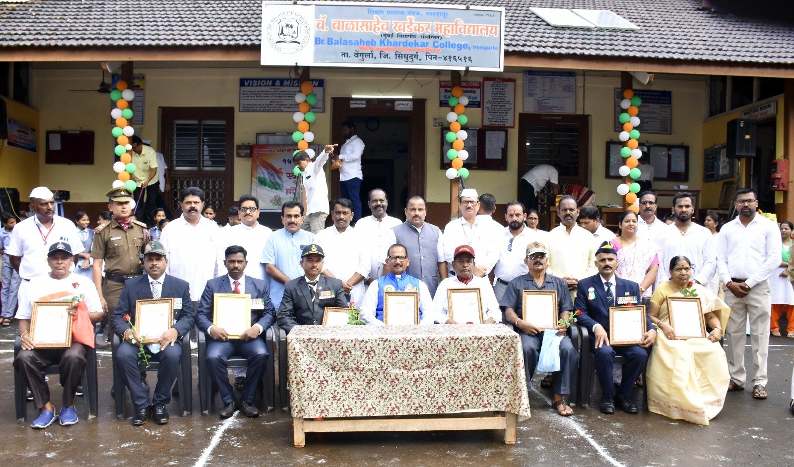 “рд╣рд░ рдШрд░ рддрд┐рд░рдВрдЧрд╛” рдЕрднрд┐рдпрд╛рди рдЖрдгрд┐ рд╕реНрд╡рд╛рддрдВрддреНрд░реНрдп рджрд┐рдирд╛рдЪреНрдпрд╛ рдФрдЪрд┐рддреНрдпрд╛рдиреЗ рднрд╛рдЬрдкрд╛ рд╕рд┐рдВрдзреБрджреБрд░реНрдЧрдЪреНрдпрд╛ рд╡рддреАрдиреЗ рд╡реЗрдВрдЧреБрд░реНрд▓реЗрдд рдирд┐рд╡реГрддреНрдд рд╕реИрдирд┐рдХ рд╕рдиреНрдорд╛рди рд╕рдорд╛рд░рдВрдн рджрд┐. резрел рдСрдЧрд╕реНрдЯ реирежреирел рд░реЛрдЬреА рдмреЕрд░рд┐рд╕реНрдЯрд░ рдмрд╛рд│рд╛рд╕рд╛рд╣реЗрдм рдЦрд░реНрдбреЗрдХрд░ рдорд╣рд╛рд╡рд┐рджреНрдпрд╛рд▓рдп, рд╡реЗрдВрдЧреБрд░реНрд▓рд╛ рдпреЗрдереЗ рджреЗрд╢рднрдХреНрддреАрдЪреНрдпрд╛ рдЙрддреНрд╕рд╛рд╣рд╛рдд рд╕рдВрдкрдиреНрди рдЭрд╛рд▓рд╛. рдХрд╛рд░реНрдпрдХреНрд░рдорд╛рд╡реЗрд│реА рд╕рднрд╛рдЧреГрд╣рд╛рдд рджреЗрд╢рднрдХреНрддреАрдкрд░ рдЧреАрддрд╛рдВрдЪрд╛ рдирд┐рдирд╛рдж рд╣реЛрдд рд╣реЛрддрд╛, рдЖрдгрд┐ рдЙрдкрд╕реНрдерд┐рддрд╛рдВрдЪреНрдпрд╛ рдЪреЗрд╣рд▒реНрдпрд╛рд╡рд░ рдЕрднрд┐рдорд╛рдирд╛рдЪреА рд▓рдЦрд▓рдЦ рджрд┐рд╕рдд рд╣реЛрддреА.