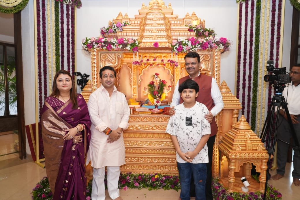 рд░рд╛рдЬреНрдпрд╛рдЪреЗ рдорддреНрд╕реНрдп рд╡ рдмрдВрджрд░реЗ рд╡рд┐рдХрд╛рд╕ рдордВрддреНрд░реА рддрдерд╛ рд╕рд┐рдВрдзреБрджреБрд░реНрдЧ рдЬрд┐рд▓реНрд╣реНрдпрд╛рдЪреЗ рдкрд╛рд▓рдХрдордВрддреНрд░реА рдирд┐рддреЗрд╢ рд░рд╛рдгреЗ рдпрд╛рдВрдиреА рдореБрдЦреНрдпрдордВрддреНрд░реА рд╢реНрд░реА. рджреЗрд╡реЗрдВрджреНрд░ рдлрдбрдгрд╡реАрд╕ рдпрд╛рдВрдЪреНрдпрд╛ рд╡рд░реНрд╖рд╛ рдирд┐рд╡рд╛рд╕рд╕реНрдерд╛рдиреА рд╕рдкрддреНрдиреАрдХ рд╢реНрд░реА рдЧрдгрдкрддреА рдмрд╛рдкреНрдкрд╛рдВрдЪреЗ рджрд░реНрд╢рди рдШреЗрддрд▓реЗ. рдпрд╛рд╡реЗрд│реА рдкрддреНрдиреА рдЛрддреБрдЬрд╛ рд░рд╛рдгреЗ, рдореБрд▓рдЧрд╛ рдХреБ.рдирд┐рдорд┐рд╖ рдпрд╛рдВрдЪреНрдпрд╛ рд╕рдорд╡реЗрдд рдЧрдгрдкрддреА рдмрд╛рдкреНрдкрд╛рдЪреА рдЖрд░рддреА рдХреЗрд▓реА.