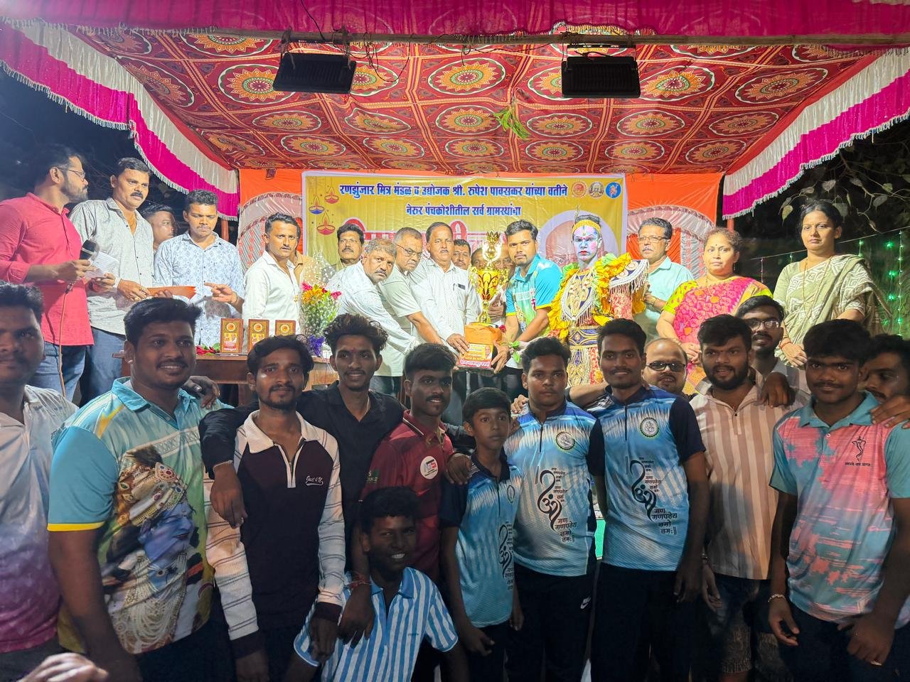 рд░рдгрдЭреБрдВрдЬрд╛рд░ рдорд┐рддреНрд░ рдордВрдбрд│ рд╡ рдЙрджреНрдпреЛрдЬрдХ рд╢реНрд░реА рд░реБрдкреЗрд╢ рдкрд╛рд╡рд╕реНрдХрд░ рдкреБрд░рд╕реНрдХреГрдд рдХрд▓реЗрдЪрд╛ рджреЗрд╡ рдХрд▓реЗрд╢реНрд╡рд░ рдирд░рдХрд╛рд╕реВрд░ рд╡рдз рд╕реНрдкрд░реНрдзреЗрдЪреЗ рдЙрджреНрдШрд╛рдЯрди рд╢реНрд░реА.рджрд╛рдЬреА рдЧрд╛рд╡рдбреЗ рдпрд╛рдВрдЪреНрдпрд╛ рд╢реБрднрд╣рд╕реНрддреЗ рд╢реНрд░реАрдлрд│ рд╡рд╛рдврд╡реВрди рдХрд░рдгреНрдпрд╛рдд рдЖрд▓реЗ.рдпрд╛ рд╕реНрдкрд░реНрдзреЗрдд рдиреЗрд░реВрд░ рдкрдВрдЪрдХреНрд░реЛрд╢реАрддреАрд▓ рддрдмреНрдмрд▓ рд╕рд╛рдд рд╕рдВрдШрд╛рдиреА рд╕рд╣рднрд╛рдЧ рдиреЛрдВрджрд╡рд┐рд▓рд╛ рдпрд╛ рд╕реНрдкрд░реНрдзреЗрдд рд▓реЛрдХрд░рд╛рдЬрд╛ рдорд┐рддреНрд░ рдордВрдбрд│ рдпреЗрдКрдбреАрдпреЗрд╡рд╛рдбреА,рд░рдВрдЧрд╢реНрд░реА рдЯреНрд░рд┐рдХрд╕реАрди рдЧреНрд░реБрдк рдиреЗрд░реВрд░ рджреЗрд╕рд╛рдИрд╡рд╛рдбреА, рдУрдо рд╢рд┐рд╡рдХреГрдкрд╛ рдХрд▓рд╛ рдХреНрд░реАрдбрд╛ рдордВрдбрд│ рдиреЗрд░реВрд░ рджреЗрдКрд│рд╡рд╛рдбреА,рд╕рд╛рдИ рд╣рдиреБрдорд╛рди рд░реЗрд╡рдЯреАрд╡рд╛рдбреА рд╡рд╛рд▓рд╛рд╡рд▓, рд╕рд╛рдКрд│рд╡рд╛рдбреА рдорд┐рддреНрд░ рдордВрдбрд│ рдиреЗрд░реВрд░ рд╕рд╛рдКрд│рд╡рд╛рдбреА, рд╕рд╛рдИ рдХрд▓реЗрд╢реНрд╡рд░ рдорд┐рддреНрд░рдордВрдбрд│ рдиреЗрд░реВрд░, рдмреНрд░рд╛рд╣реНрдордг рджреЗрд╡ рдорд┐рддреНрд░ рдордВрдбрд│ рдиреЗрд░реВрд░ рдЕрд╢рд╛ рд╕рд╛рдд рд╕рдВрдШрд╛рдиреА рд╕рд╣рднрд╛рдЧ рдШреЗрддрд▓рд╛.рдпрд╛ рд╕реНрдкрд░реНрдзреЗрдЪреЗ рдкреНрд░рдердо рдкрд╛рд░рд┐рддреЛрд╖рд┐рдХ рд░реЛрдЦ рд░рдХреНрдХрдо резреирежрежреж/- рд╡ рдЪрд╖рдХ рд▓реЛрдХрд░рд╛рдЬрд╛ рдорд┐рддреНрд░рдордВрдбрд│ рдпреЗрдКрдбреАрдпреЗрд╡рд╛рдбреА рдпрд╛рдВрдиреА рдкрдЯрдХрд╛рд╡рд┐рд▓реЗ рддрд░ рджреНрд╡рд┐рддреАрдп рдкрд╛рд░рд┐рддреЛрд╖рд┐рдХ рд░реЛрдЦ рд░рдХреНрдХрдо рд░реБрдкрдпреЗ 7000/- рд╡ рдЪрд╖рдХ рдУрдо рд╢рд┐рд╡ рдХреГрдкрд╛ рдХрд▓рд╛ рдХреНрд░реАрдбрд╛ рдордВрдбрд│ рдиреЗрд░реБрд░ рджреЗрдКрд│рд╡рд╛рдбреА рдпрд╛рдВрдиреА рдкрдЯрдХрд╛рд╡рд┐рд▓реЗ рддрд░ рддреГрддреАрдп рдкрд╛рд░рд┐рддреЛрд╖рд┐рдХ рд░реЛрдЦ рд░рдХреНрдХрдо рд░реБрдкрдпреЗ 4000/- рд╡ рдЪрд╖рдХ рд░рдВрдЧрд╢реНрд░реА рдЯреНрд░реАрдХрд╕реАрди рдЧреНрд░реБрдк рдиреЗрд░реВрд░ рджреЗрд╕рд╛рдИрд╡рд╛рдбреА рдпрд╛рдВрдиреА рдкрдЯрдХрд╛рд╡рд┐рд▓реЗ,рддреНрдпрд╛рдЪрдкреНрд░рдорд╛рдгреЗ рдЙрддреНрддреЗрдЬрдирд╛рд░реНрде рдкрд╛рд░рд┐рддреЛрд╖рд┐рдХ рд░реЛрдЦ рд░рдХреНрдХрдо рд░реБрдкрдпреЗ рейрежрежреж/- рд╡ рдЪрд╖рдХ рд╢реНрд░реА.рдмреНрд░рд╛рд╣реНрдордг рджреЗрд╡ рдорд┐рддреНрд░ рдордВрдбрд│ рдиреЗрд░реВрд░ рдпрд╛рдВрдиреА рдкрдЯрдХрд╛рд╡рд┐рд▓реЗ.рдпрд╛ рд╕реНрдкрд░реНрдзреЗрдд рд╕рд╣рднрд╛рдЧреА рд╕рдВрдШрд╛рд╕ рдорд╛рдирдзрди рдореНрд╣рдгреВрди рд░реЛрдЦ рд░рдХреНрдХрдо рд░реБрдкрдпреЗ реирежрежреж/- рд╡ рдЪрд╖рдХ рд╢реНрд░реА.рд╕рд╛рдИ рд╣рдиреБрдорд╛рди рд░реЗрд╡рдЯреАрд╡рд╛рдбреА рд╡рд╛рд▓рд╛рд╡рд▓,рд╕рд╛рдКрд│рд╡рд╛рдбреА рдорд┐рддреНрд░рдордВрдбрд│ рдиреЗрд░реВрд░ рд╕рд╛рдКрд│рд╡рд╛рдбреА, рд╢реНрд░реА.рд╕рд╛рдИ рдХрд▓реЗрд╢реНрд╡рд░ рдорд┐рддреНрд░рдордВрдбрд│ рдиреЗрд░реВрд░ рдпрд╛ рд╕рдВрдШрд╛рд