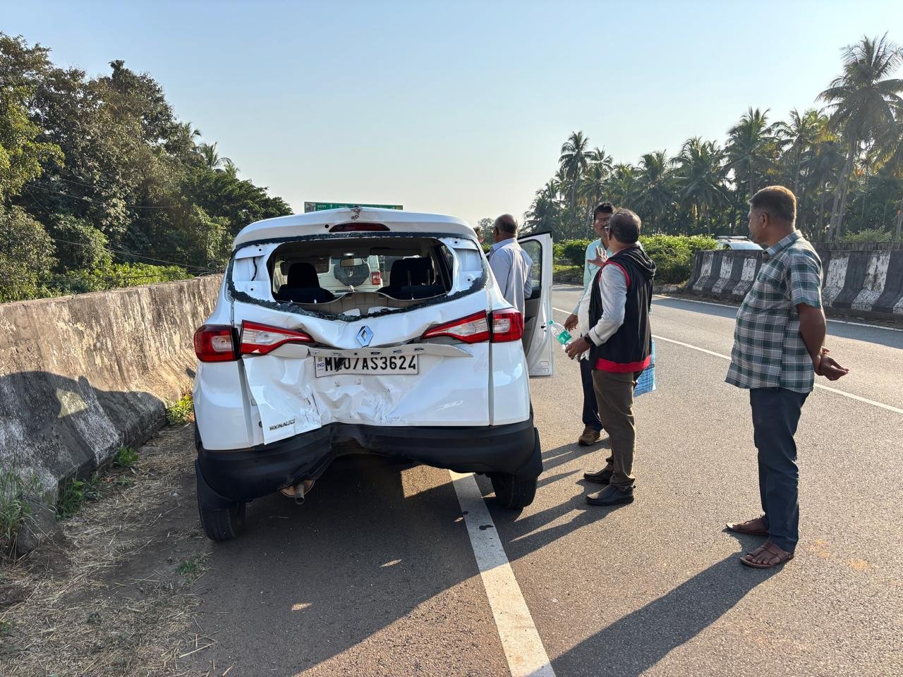 рдореБрдВрдмрдИ-рдЧреЛрд╡рд╛ рдорд╣рд╛рдорд╛рд░реНрдЧрд╛рд╡рд░ рдХреБрдбрд╛рд│-рдкрд╛рд╡рд╢реА рдпреЗрдереЗ рдЖрдЬ рджреБрдкрд╛рд░реА рей.рейреж рдЪреНрдпрд╛ рджрд░рдореНрдпрд╛рди рд░реЗрдиреЛрд▓реНрдб рдХрд╛рд░ рдЖрдгрд┐ рджреБрдЪрд╛рдХреА рдпрд╛рдВрдЪреНрдпрд╛рдд рдЕрдкрдШрд╛рдд рдЭрд╛рд▓рд╛ рдЕрд╕реВрди рдпрд╛рдордзреНрдпреЗ рджреБрдЪрд╛рдХреАрд╕реНрд╡рд╛рд░ рдЧрдВрднреАрд░ рдЬрдЦрдореА рдЭрд╛рд▓рд╛ рдЖрд╣реЗ.рдкреНрд░рд╛рдкреНрдд рдорд╛рд╣рд┐рддреАрдиреБрд╕рд╛рд░,рдореБрдВрдмрдИрд╣реВрди рдЧреЛрд╡реНрдпрд╛рдХрдбреЗ рдЬрд╛рдгрд╛рд▒реНрдпрд╛ рднрд░рдзрд╛рд╡ рдПрдХреНрдЯрд┐рд╡рд╛ рджреБрдЪрд╛рдХреАрдЪреА рдкреБрдвреЗ рдЬрд╛рдгрд╛рд▒реНрдпрд╛ рд░реЗрдиреЙрд▓реНрдЯ рдХрд╛рд░рд▓рд╛ рдорд╛рдЧреВрди рдзрдбрдХ рдмрд╕рд▓реА.рдпрд╛ рдзрдбрдХреЗрдд рджреБрдЪрд╛рдХреАрд╕реНрд╡рд╛рд░ рдЧрдВрднреАрд░ рдЬрдЦрдореА рдЕрд╕реВрди рддреНрдпрд╛рд▓рд╛ рдЙрдкрдЪрд╛рд░рд╛рд╕рд╛рдареА рдХреБрдбрд╛рд│ рд░реБрдЧреНрдгрд╛рд▓рдпрд╛рдд рджрд╛рдЦрд▓ рдХреЗрд▓реЗ рдЖрд╣реЗ.рдпрд╛ рдЕрдкрдШрд╛рддрд╛рдд рджреБрдЪрд╛рдХреАрдЪреЗ рдореЛрдареЗ рдиреБрдХрд╕рд╛рди рдЭрд╛рд▓реЗ рдЕрд╕реВрди рдХреБрдбрд╛рд│ рдкреЛрд▓рд┐рд╕рд╛рдВрдиреА рдШрдЯрдирд╛рд╕реНрдерд│реА рдпреЗрдКрди рдкрдВрдЪрдирд╛рдорд╛ рдХреЗрд▓рд╛.