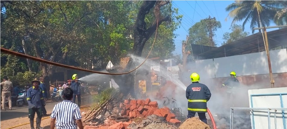 рддреЗрдереАрд▓ рдЖрдВрдмреНрдпрд╛рдЪреНрдпрд╛ рдЭрд╛рдбрд╛рдЦрд╛рд▓реА рдЕрд╕рд▓реЗрд▓реНрдпрд╛ рдЯрд╛рдХрд╛рдК рд╕рд╛рд╣рд┐рддреНрдпрд╛рд▓рд╛ рдЖрдЧ рд▓рд╛рд╡рдгреНрдпрд╛рдд рдЖрд▓реА. рдорд╛рддреНрд░ рддреЗрдереЗ рд╡рд╛рд╣рдирд╛рдВрдЪреЗ рдЦрд░рд╛рдм рдЯрд╛рдпрд░ рдЕрд╕рд▓реНрдпрд╛рдиреЗ рдЖрдЧ рдЕрдЪрд╛рдирдХ рднрдбрдХрд▓реА. рддреЗрдереЗ рдЧреЕрд░реЗрдЬ рдордзреАрд▓ рджреЛрди рдирд╛рджреБрд░реБрд╕реНрдд рджреБрдЪрд╛рдХреА рдЙрднреНрдпрд╛ рдХрд░реВрди рдареЗрд╡рдгреНрдпрд╛рдд рдЖрд▓реНрдпрд╛ рд╣реЛрддреНрдпрд╛. рддреНрдпрд╛рд╣реА рдЖрдЧреАрдд рдЬрд│реВрди рдЦрд╛рдХ рдЭрд╛рд▓реНрдпрд╛. рдзреБрд░рд╛рдЪреЗ рд▓реЛрдЯ рдирд┐рд░реНрдорд╛рдг рдЭрд╛рд▓реНрдпрд╛рдиреЗ рдирдЬрд┐рдХрдЪреНрдпрд╛ рджреБрдХрд╛рдирджрд╛рд░рд╛рдВрд╕рд╣ рдирд╛рдЧрд░реАрдХрд╛рдВрдЪреА рдПрдХрдЪ рддрд╛рд░рд╛рдВрдмрд│ рдЙрдбрд╛рд▓реА. рдпрд╛рдмрд╛рдмрддрдЪреА рдорд╛рд╣реАрддреА рдорд┐рд│рддрд╛рдЪ рдХреБрдбрд╛рд│ рдкреЛрд▓реАрд╕рд╛рдВрд╕рд╣ рд▓реЛрдХрдкреНрд░рддрд┐рдирд┐рдзреА рд╡ рдирд╛рдЧрд░рд┐рдХрд╛рдВрдиреА рдШрдЯрдирд╛рд╕реНрдерд│реА рдзрд╛рд╡ рдШреЗрддрд▓реА. рдПрдордЖрдпрдбреАрд╕реА рдЖрдгрд┐ рдХреБрдбрд╛рд│ рди.рдкрдВ. рдЪреЗ рдЕрдЧреНрдирд┐рд╢рдорди рдмрдВрдмрд╣реА рдкрд╛рдЪрд╛рд░рдг рдХрд░рдгреНрдпрд╛рдд рдЖрд▓реЗ. рдмрдВрдмрд╛рдЪреНрдпрд╛ рд╕рд╣рд╛рдпреНрдпрд╛рдиреЗ рдЖрдЧреАрд╡рд░ рдирд┐рдпрдВрддреНрд░рдг рдорд┐рд│рд╡рд┐рдгреНрдпрд╛рдд рдЖрд▓реЗ.