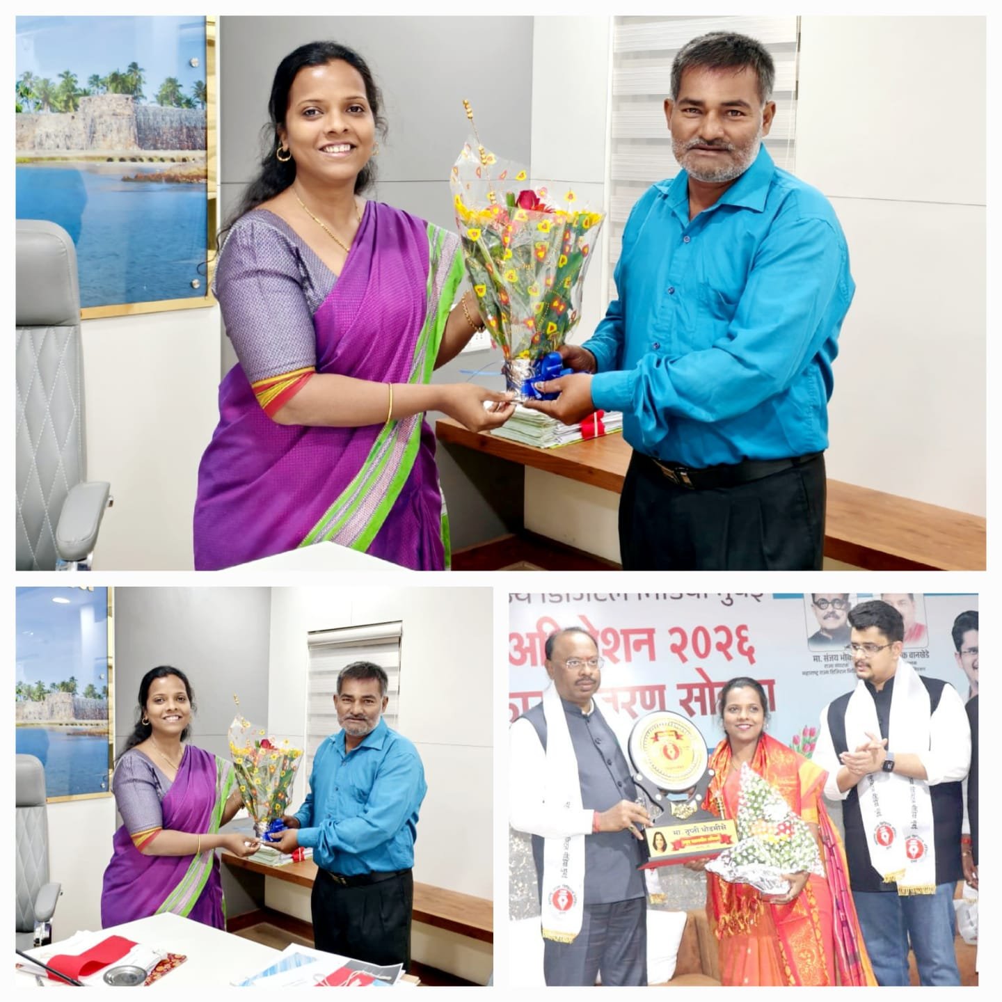 рдорд╣рд╛рд░рд╛рд╖реНрдЯреНрд░ рд░рд╛рдЬреНрдп рдбрд┐рдЬрд┐рдЯрд▓ рдореАрдбрд┐рдпрд╛рдЪреНрдпрд╛ рдорд┐рд░рдЬ рдпреЗрдереЗ рдкрд╛рд░ рдкрдбрд▓реЗрд▓реНрдпрд╛ рдЕрдзрд┐рд╡реЗрд╢рдирд╛рдд рд╕рд┐рдВрдзреБрджреБрд░реНрдЧ рдЬрд┐рд▓реНрд╣рд╛ рдЬрд┐рд▓реНрд╣рд╛рдзрд┐рдХрд╛рд░реА рддреГрдкреНрддреА рдзреЛрдбрдорд┐рд╕реЗ рдпрд╛рдВрдЪрд╛ рдорд╣рд╕реВрд▓рдордВрддреНрд░реА рдЪрдВрджреНрд░рд╢реЗрдЦрд░ рдмрд╛рд╡рдирдХреБрд│реЗ рдпрд╛рдВрдЪреНрдпрд╛ рд╣рд╕реНрддреЗ рдкреБрд░рд╕реНрдХрд╛рд░ рджреЗрд╡реВрди рдЧреМрд░рд╡ рдХрд░рдгреНрдпрд╛рдд рдЖрд▓рд╛.рдЬрд┐рд▓реНрд╣рд╛рдзрд┐рдХрд╛рд░реА рддреГрдкреНрддреА рдзреЛрдбрдорд┐рд╕реЗ рдпрд╛рдВрдирд╛ рдкреБрд░рд╕реНрдХрд╛рд░ рдорд┐рд│рд╛рд▓реНрдпрд╛рдмрджреНрджрд▓ рдорд╣рд╛рд░рд╛рд╖реНрдЯреНрд░ рд░рд╛рдЬреНрдп рдорд░рд╛рдареА рдкрддреНрд░рдХрд╛рд░ рд╕рдВрдШрд╛рдЪреЗ рдЬрд┐рд▓реНрд╣рд╛рдзреНрдпрдХреНрд╖ рдЖрдмрд╛ рдЦрд╡рдгреЗрдХрд░ рдпрд╛рдВрдиреА рдЬрд┐рд▓реНрд╣рд╛рдзрд┐рдХрд╛рд▒реНрдпрд╛рдВрдЪреЗ рдкреБрд╖реНрдкрдЧреБрдЪреНрдЫ рджреЗрдКрди рдЕрднрд┐рдирдВрджрди рдХреЗрд▓реЗ рдЖрд╣реЗ.