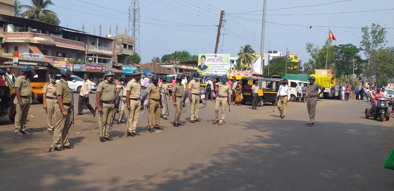 शिवजयंती उत्सव 19 फेब्रुवारी रोजी होणार आहे.तालुक्यातील गावागावांमध्ये हा उत्सव साजरा केला जाणार आहे. पोलिसांनी दंगा काबू पथकाची रंगीत तालीम वैभववाडी शहरात केली.या तालमीत वैभववाडी पोलीस निरीक्षक अतुल जाधव, पोलीस उपनिरीक्षक प्रविण देसाई,पोलिस सहाय्यक अधिकारी रविकांत अडुळकर,पोलीस गणेश भोवड व अन्य पोलीस कर्मचारी यावेळी सहभागी झाले होते.यावेळी पोलिस निरीक्षक अतुल जाधव म्हणाले, शिवजयंती उत्सव व कोरोना संसर्गाच्या पार्श्वभूमीवर तालुक्यातील जनतेने शासनाच्या नियमांचे काटेकोरपणे पालन करावे,मास्क व सॅनिटायझर यांचा वापर करावा,गर्दी करू नये,सोशल डिस्टन्ससिंगचे पालन करावे असे आवाहन केले आहे.